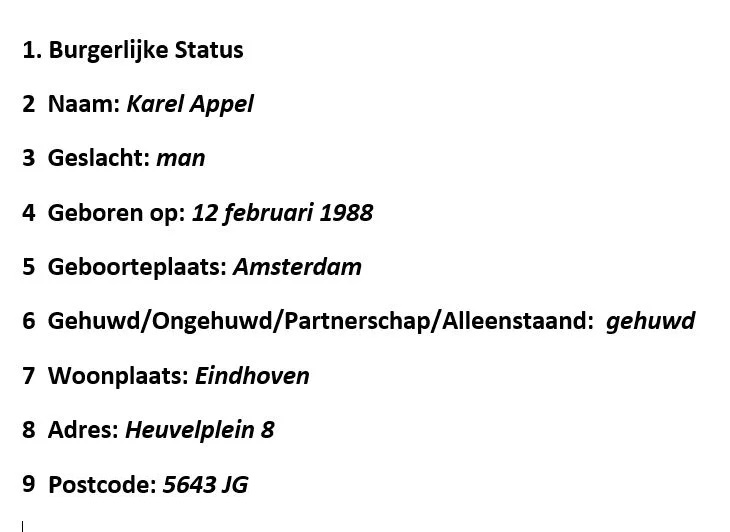 These categories are used in official documents such as identification cards, passports, and legal forms to provide information about a person’s current “burgerlijke staat” or marital status.