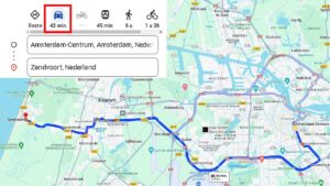 You are in Amsterdam and you have a car. How long will it take to go to the sea?